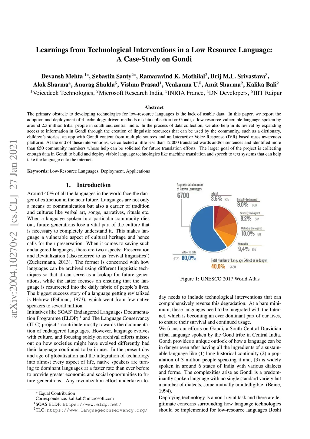 The primary obstacle to developing technologies for low-resource languages is the lack of usable data. In this paper, we report the adoption and deployment of 4 technology-driven methods of data collection for Gondi, a low-resource vulnerable language spoken by around 2.3 million tribal people in south and central India. In the process of data collection, we also help in its revival by expanding access to information in Gondi through the creation of linguistic resources that can be used by the community, such as a dictionary, children's stories, an app with Gondi content from multiple sources and an Interactive Voice Response (IVR) based mass awareness platform. At the end of these interventions, we collected a little less than 12,000 translated words and/or sentences and identified more than 650 community members whose help can be solicited for future translation efforts. The larger goal of the project is collecting enough data in Gondi to build and deploy viable language technologies like machine translation and speech to text systems that can help take the language onto the internet.