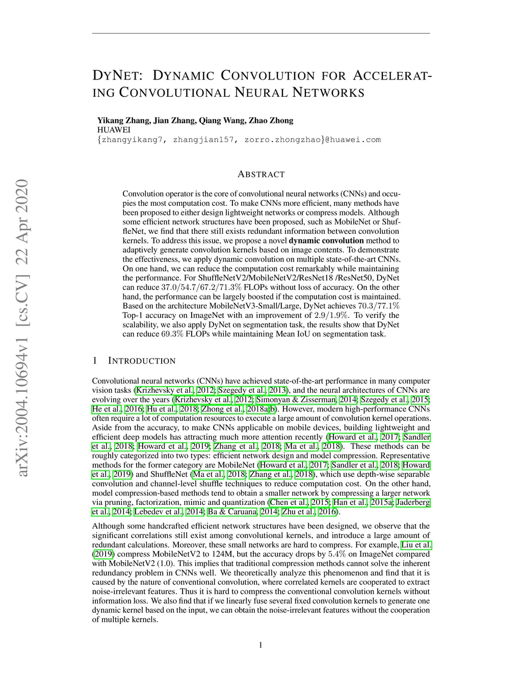 DyNet: Dynamic Convolution for Accelerating Convolutional Neural