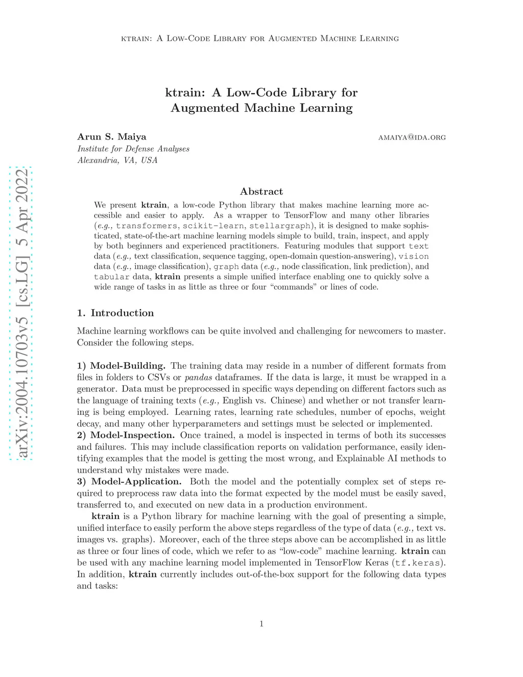 ktrain: A Low-Code Library for Augmented Machine Learning