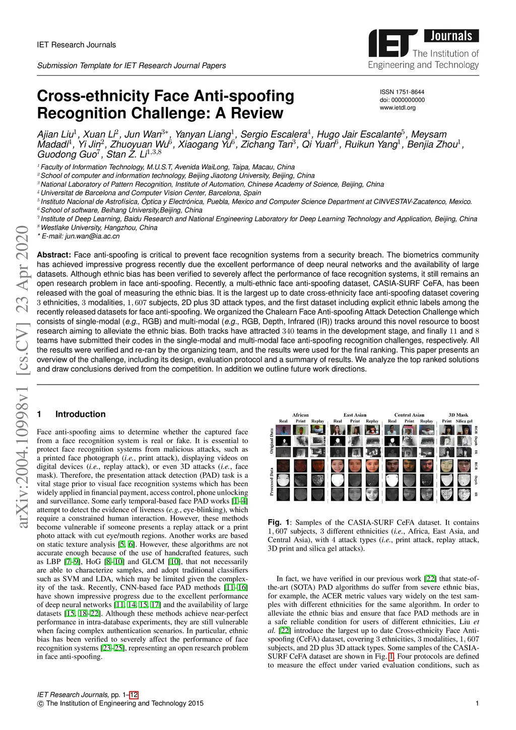 Cross-ethnicity Face Anti-spoofing Recognition Challenge: A Review