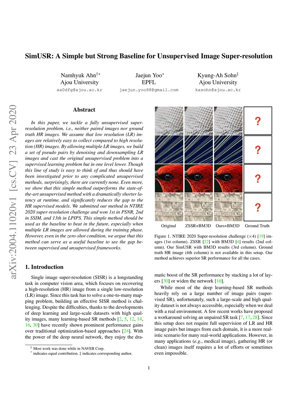 In this paper, we tackle a fully unsupervised super-resolution problem, i.e., neither paired images nor ground truth HR images. We assume that low resolution (LR) images are relatively easy to collect compared to high resolution (HR) images. By allowing multiple LR images, we build a set of pseudo pairs by denoising and downsampling LR images and cast the original unsupervised problem into a supervised learning problem but in one level lower. Though this line of study is easy to think of and thus should have been investigated prior to any complicated unsupervised methods, surprisingly, there are currently none. Even more, we show that this simple method outperforms the state-of-the-art unsupervised method with a dramatically shorter latency at runtime, and significantly reduces the gap to the HR supervised models. We submitted our method in NTIRE 2020 super-resolution challenge and won 1st in PSNR, 2nd in SSIM, and 13th in LPIPS. This simple method should be used as the baseline to beat in the future, especially when multiple LR images are allowed during the training phase. However, even in the zero-shot condition, we argue that this method can serve as a useful baseline to see the gap between supervised and unsupervised frameworks.