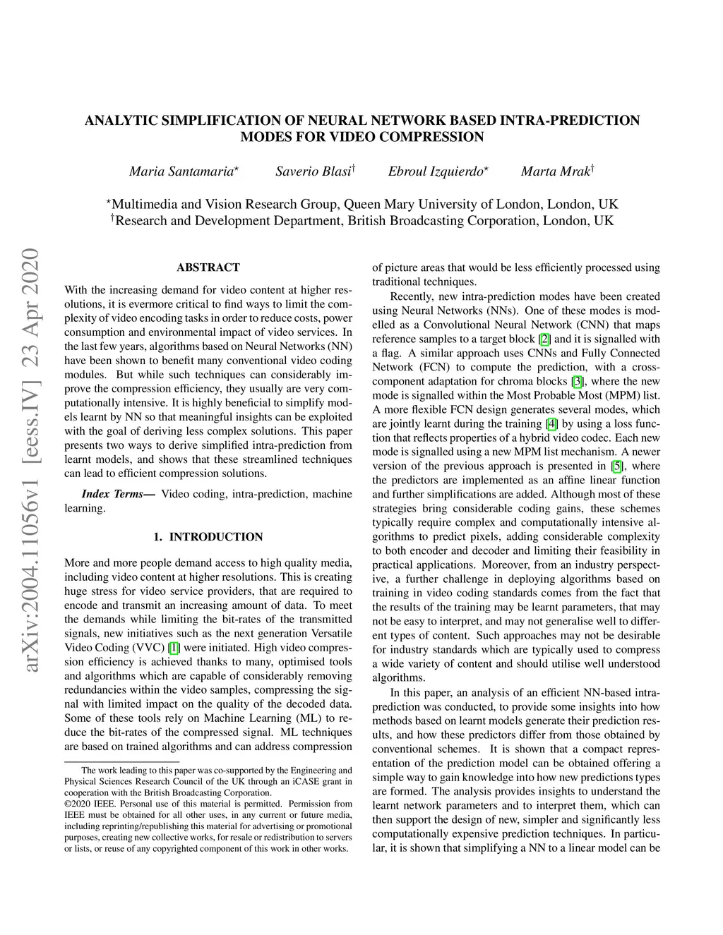 Analytic Simplification of Neural Network based Intra-Prediction Modes