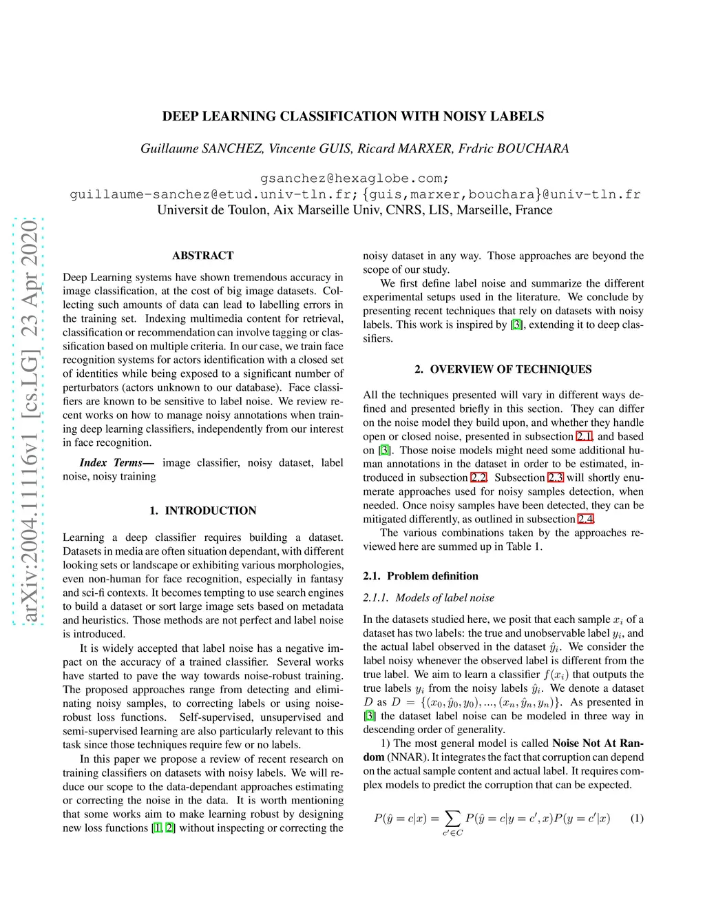 Deep Learning Classification With Noisy Labels