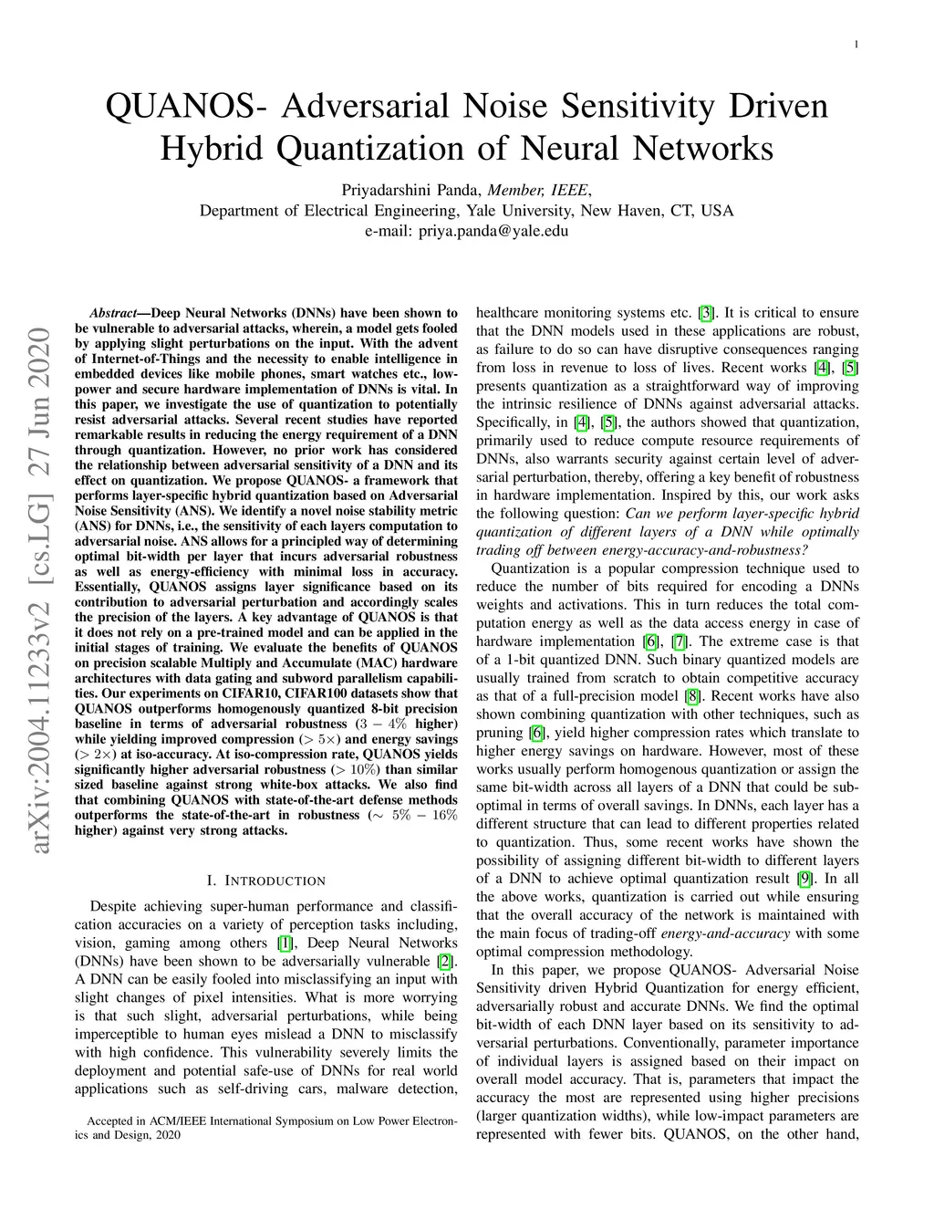 QUANOS- Adversarial Noise Sensitivity Driven Hybrid Quantization of