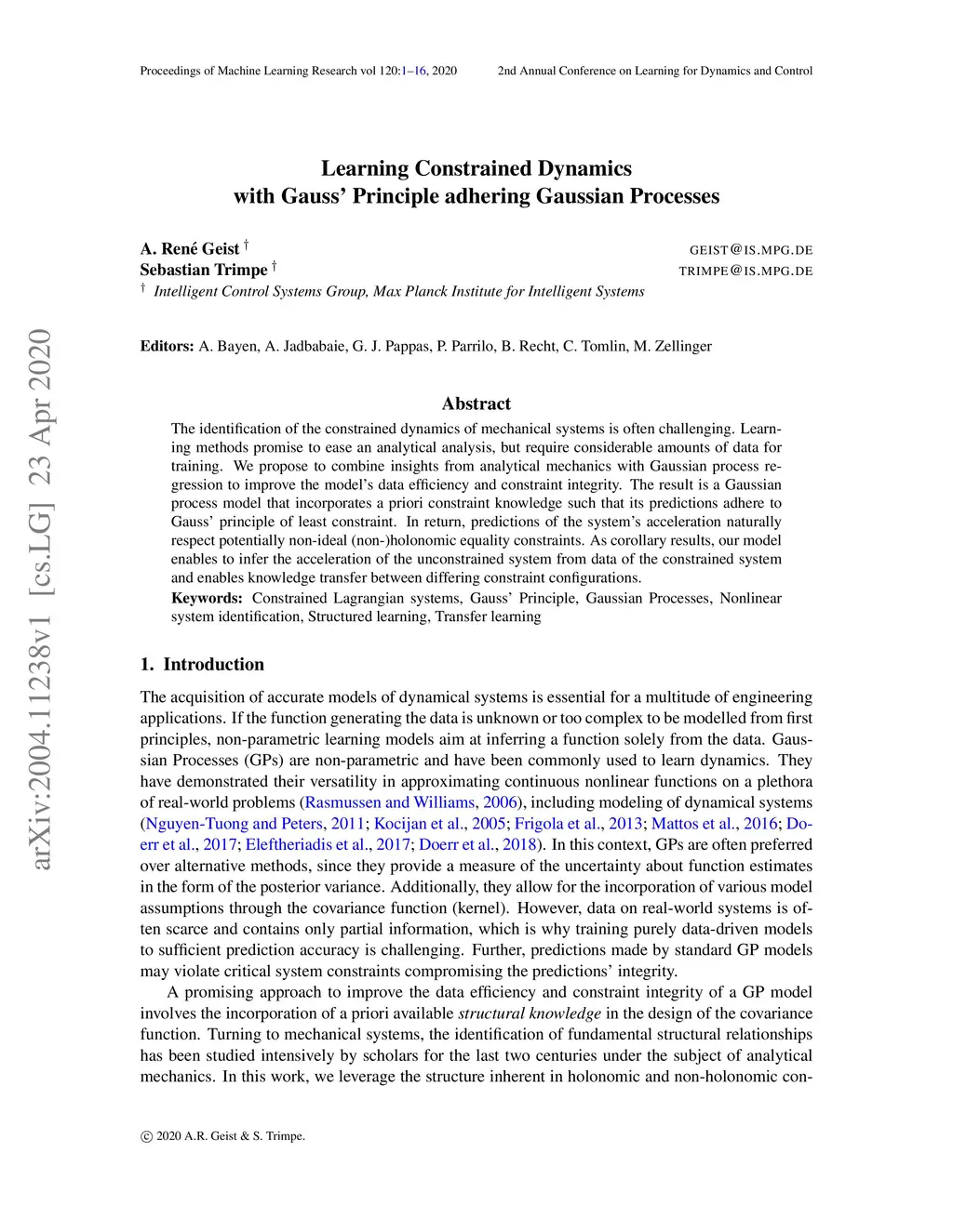 Learning Constrained Dynamics with Gauss Principle adhering Gaussian