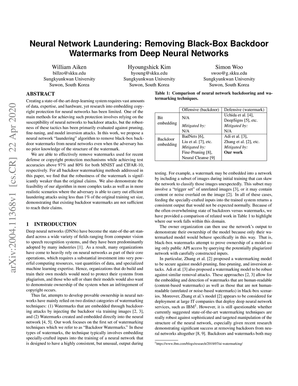 Creating a state-of-the-art deep-learning system requires vast amounts of data, expertise, and hardware, yet research into embedding copyright protection for neural networks has been limited. One of the main methods for achieving such protection involves relying on the susceptibility of neural networks to backdoor attacks, but the robustness of these tactics has been primarily evaluated against pruning, fine-tuning, and model inversion attacks. In this work, we propose a neural network "laundering" algorithm to remove black-box backdoor watermarks from neural networks even when the adversary has no prior knowledge of the structure of the watermark. We are able to effectively remove watermarks used for recent defense or copyright protection mechanisms while achieving test accuracies above 97% and 80% for both MNIST and CIFAR-10, respectively. For all backdoor watermarking methods addressed in this paper, we find that the robustness of the watermark is significantly weaker than the original claims. We also demonstrate the feasibility of our algorithm in more complex tasks as well as in more realistic scenarios where the adversary is able to carry out efficient laundering attacks using less than 1% of the original training set size, demonstrating that existing backdoor watermarks are not sufficient to reach their claims.