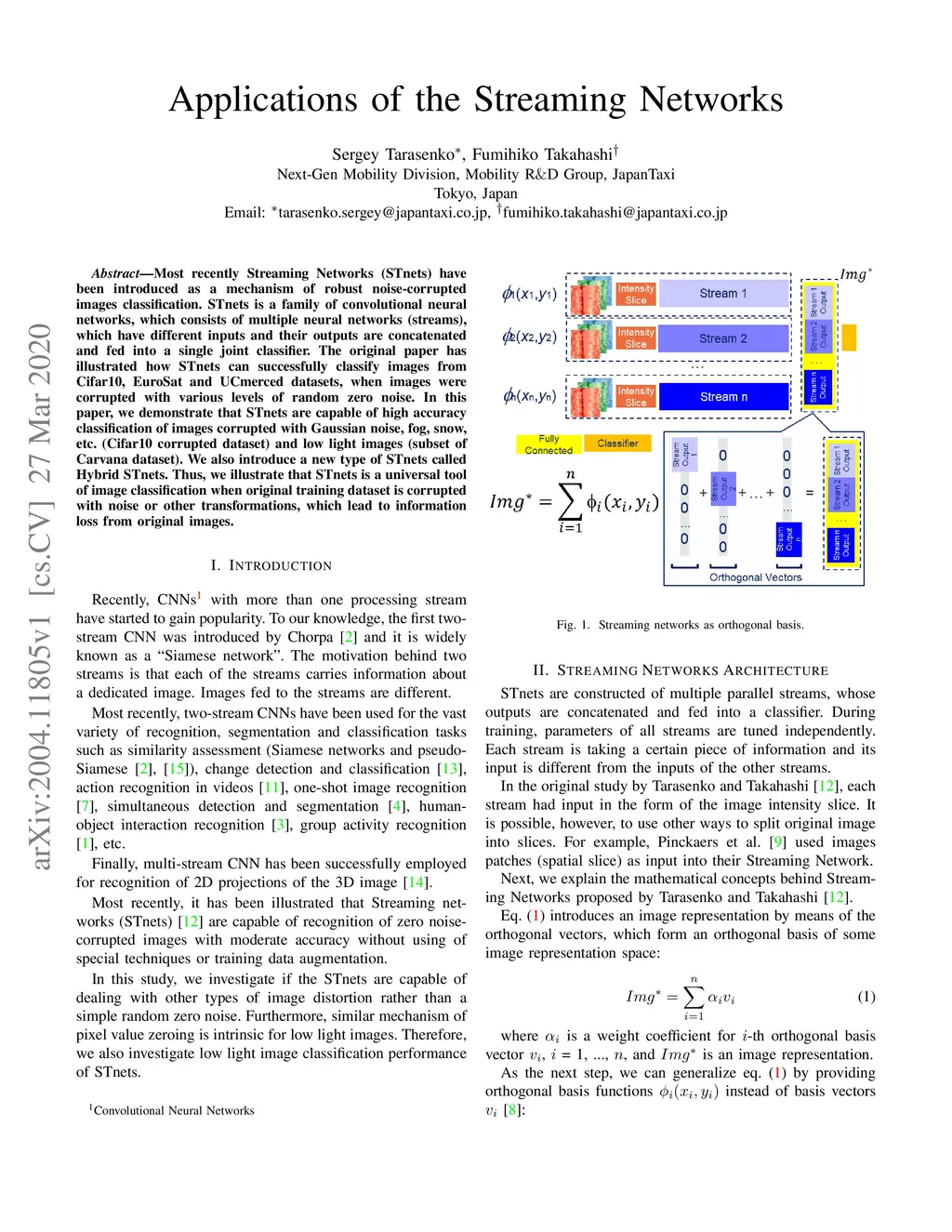Most recently Streaming Networks (STnets) have been introduced as a mechanism of robust noise-corrupted images classification. STnets is a family of convolutional neural networks, which consists of multiple neural networks (streams), which have different inputs and their outputs are concatenated and fed into a single joint classifier. The original paper has illustrated how STnets can successfully classify images from Cifar10, EuroSat and UCmerced datasets, when images were corrupted with various levels of random zero noise. In this paper, we demonstrate that STnets are capable of high accuracy classification of images corrupted with Gaussian noise, fog, snow, etc. (Cifar10 corrupted dataset) and low light images (subset of Carvana dataset). We also introduce a new type of STnets called Hybrid STnets. Thus, we illustrate that STnets is a universal tool of image classification when original training dataset is corrupted with noise or other transformations, which lead to information loss from original images.