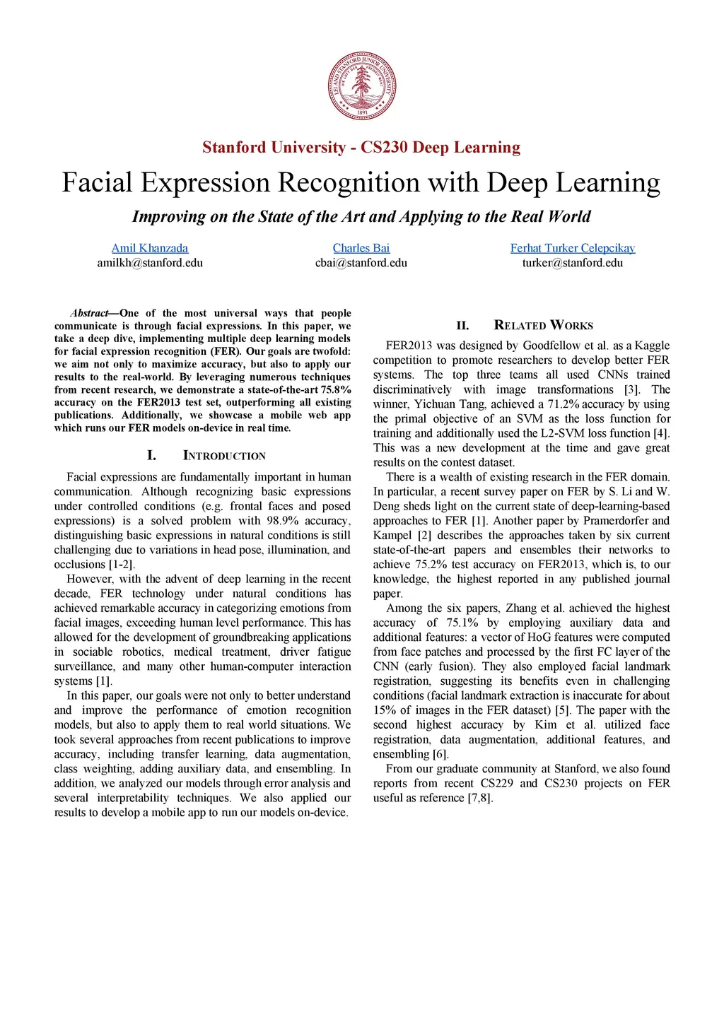 One of the most universal ways that people communicate is through facial expressions. In this paper, we take a deep dive, implementing multiple deep learning models for facial expression recognition (FER). Our goals are twofold: we aim not only to maximize accuracy, but also to apply our results to the real-world. By leveraging numerous techniques from recent research, we demonstrate a state-of-the-art 75.8% accuracy on the FER2013 test set, outperforming all existing publications. Additionally, we showcase a mobile web app which runs our FER models on-device in real time.