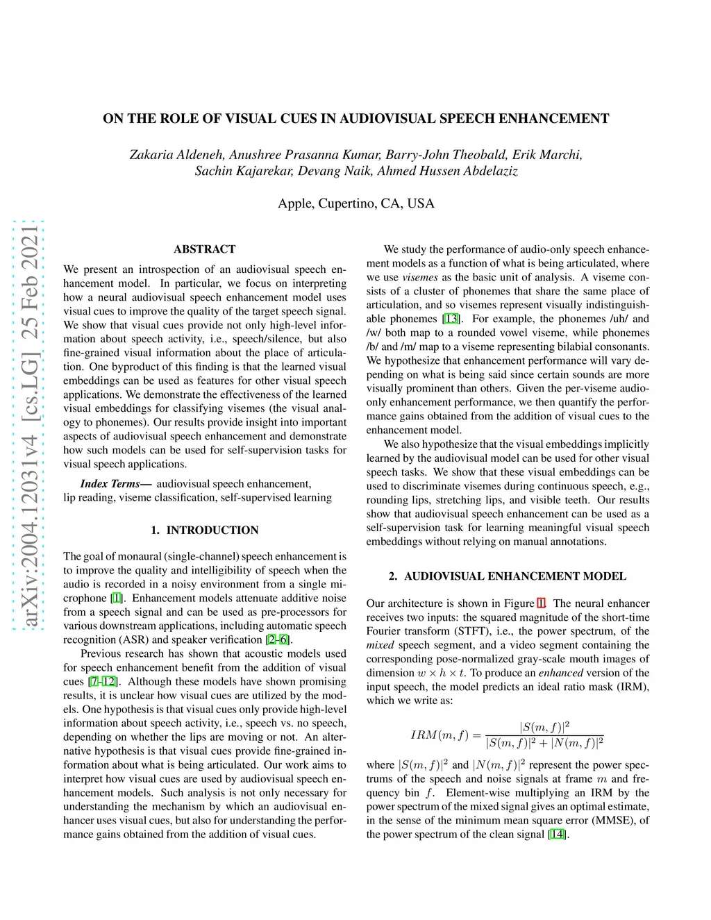 On the Role of Visual Cues in Audiovisual Speech Enhancement