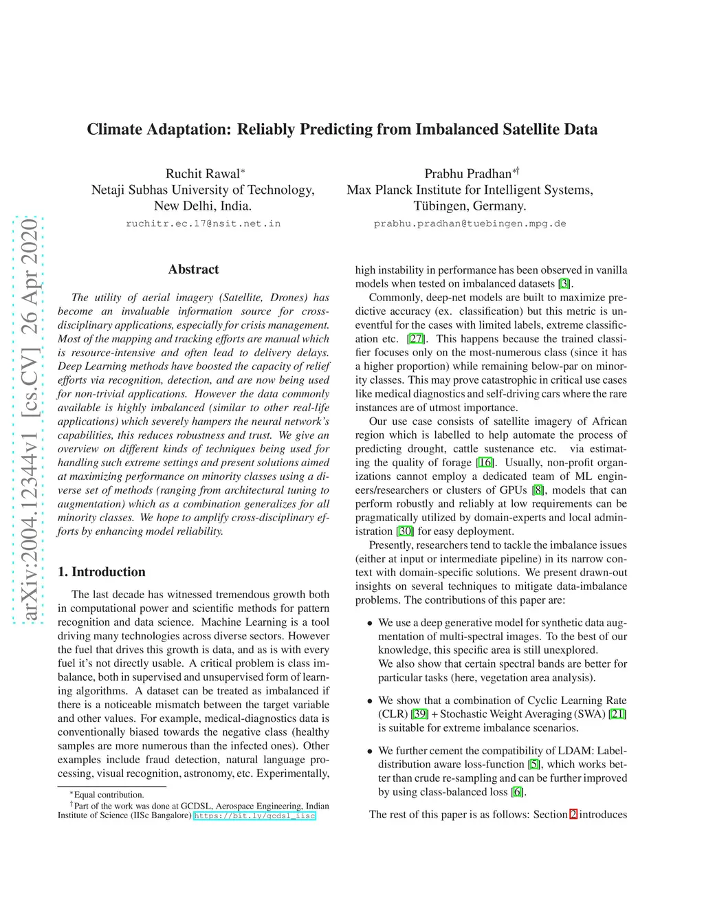 Climate Adaptation: Reliably Predicting from Imbalanced Satellite Data