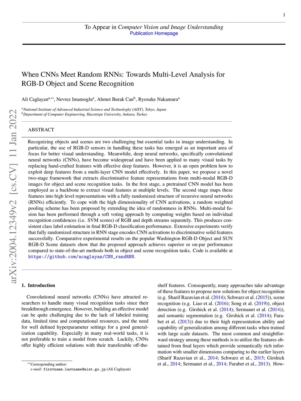 When CNNs Meet Random RNNs: Towards Multi-Level Analysis for RGB-D