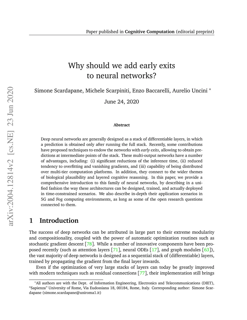 Deep neural networks are generally designed as a stack of differentiable layers, in which a prediction is obtained only after running the full stack. Recently, some contributions have proposed techniques to endow the networks with early exits, allowing to obtain predictions at intermediate points of the stack. These multi-output networks have a number of advantages, including: (i) significant reductions of the inference time, (ii) reduced tendency to overfitting and vanishing gradients, and (iii) capability of being distributed over multi-tier computation platforms. In addition, they connect to the wider themes of biological plausibility and layered cognitive reasoning. In this paper, we provide a comprehensive introduction to this family of neural networks, by describing in a unified fashion the way these architectures can be designed, trained, and actually deployed in time-constrained scenarios. We also describe in-depth their application scenarios in 5G and Fog computing environments, as long as some of the open research questions connected to them.