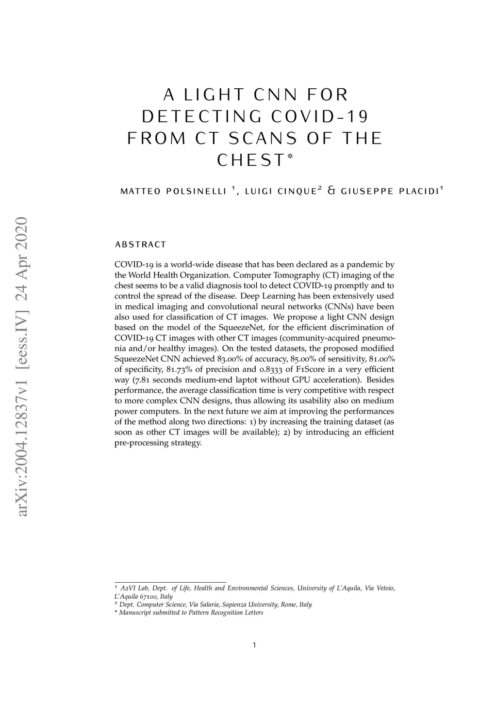 A Light CNN for detecting COVID-19 from CT scans of the chest