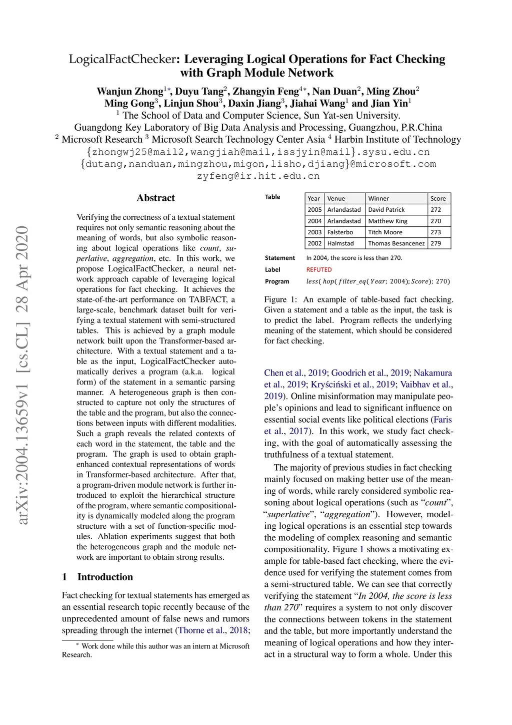 LogicalFactChecker: Leveraging Logical Operations for Fact Checking with