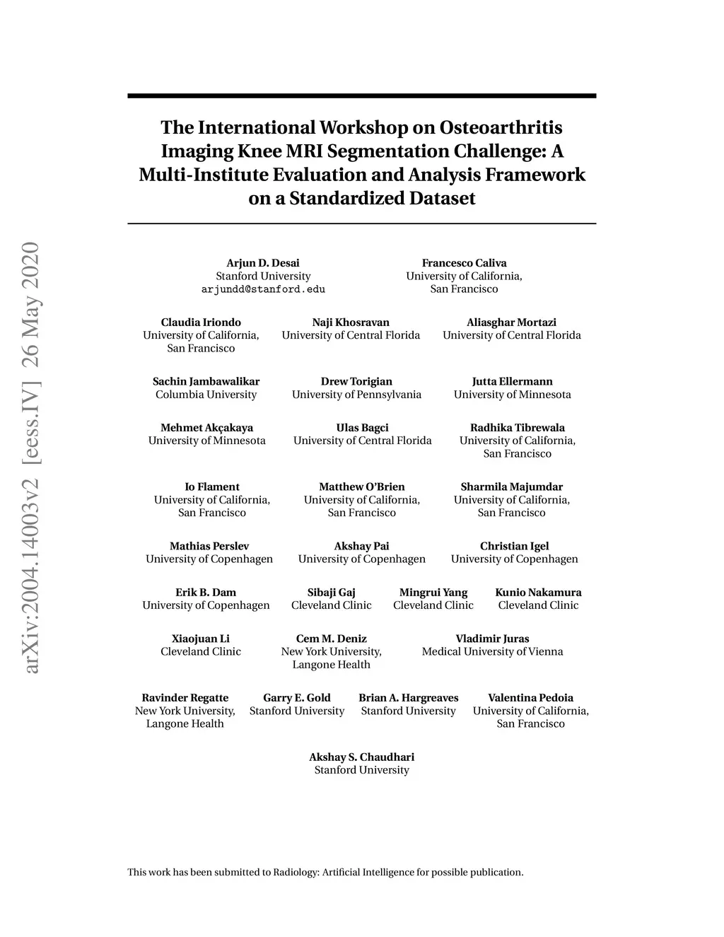 The International Workshop on Osteoarthritis Imaging Knee MRI