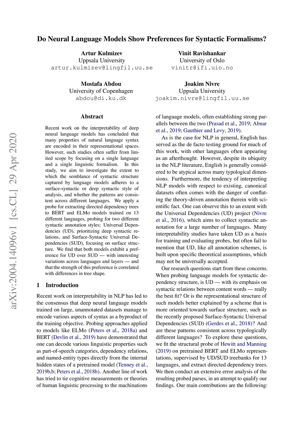 Recent work on the interpretability of deep neural language models has concluded that many properties of natural language syntax are encoded in their representational spaces. However, such studies often suffer from limited scope by focusing on a single language and a single linguistic formalism. In this study, we aim to investigate the extent to which the semblance of syntactic structure captured by language models adheres to a surface-syntactic or deep syntactic style of analysis, and whether the patterns are consistent across different languages. We apply a probe for extracting directed dependency trees to BERT and ELMo models trained on 13 different languages, probing for two different syntactic annotation styles: Universal Dependencies (UD), prioritizing deep syntactic relations, and Surface-Syntactic Universal Dependencies (SUD), focusing on surface structure. We find that both models exhibit a preference for UD over SUD - with interesting variations across languages and layers - and that the strength of this preference is correlated with differences in tree shape.