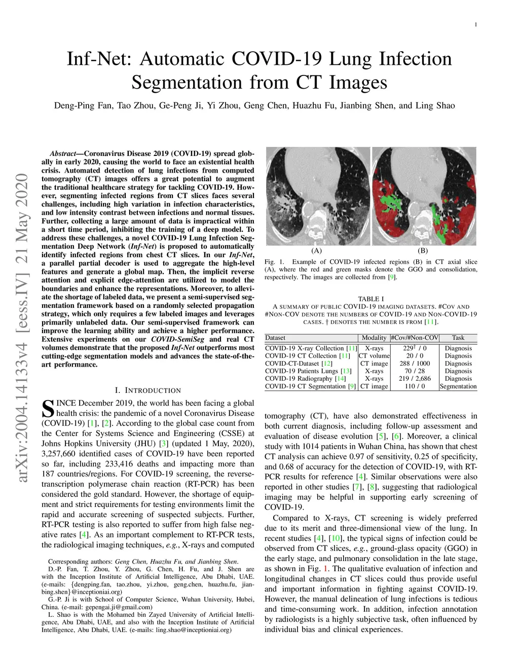 Inf-Net: Automatic COVID-19 Lung Infection Segmentation from CT Images