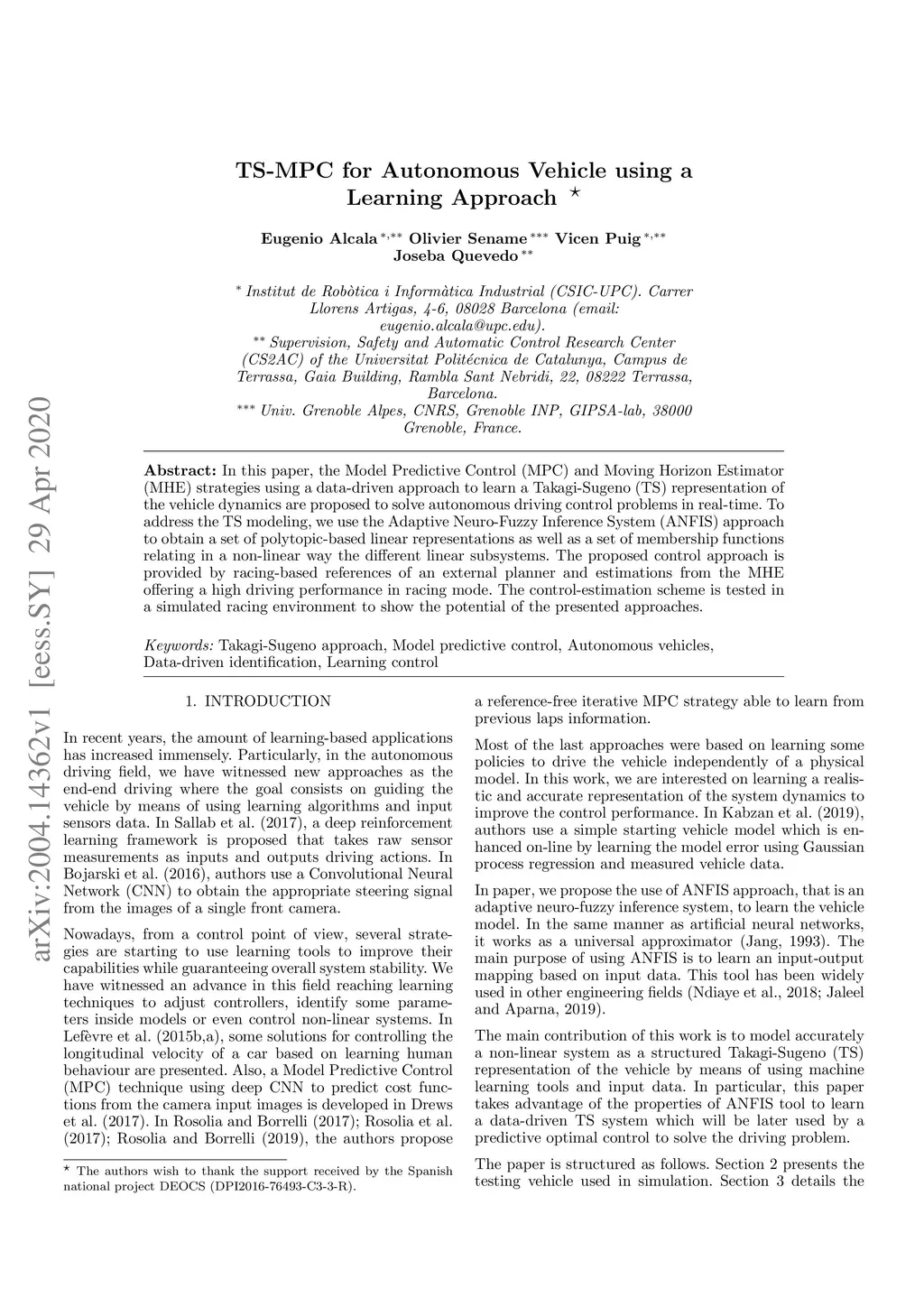 TS-MPC for Autonomous Vehicle using a Learning Approach