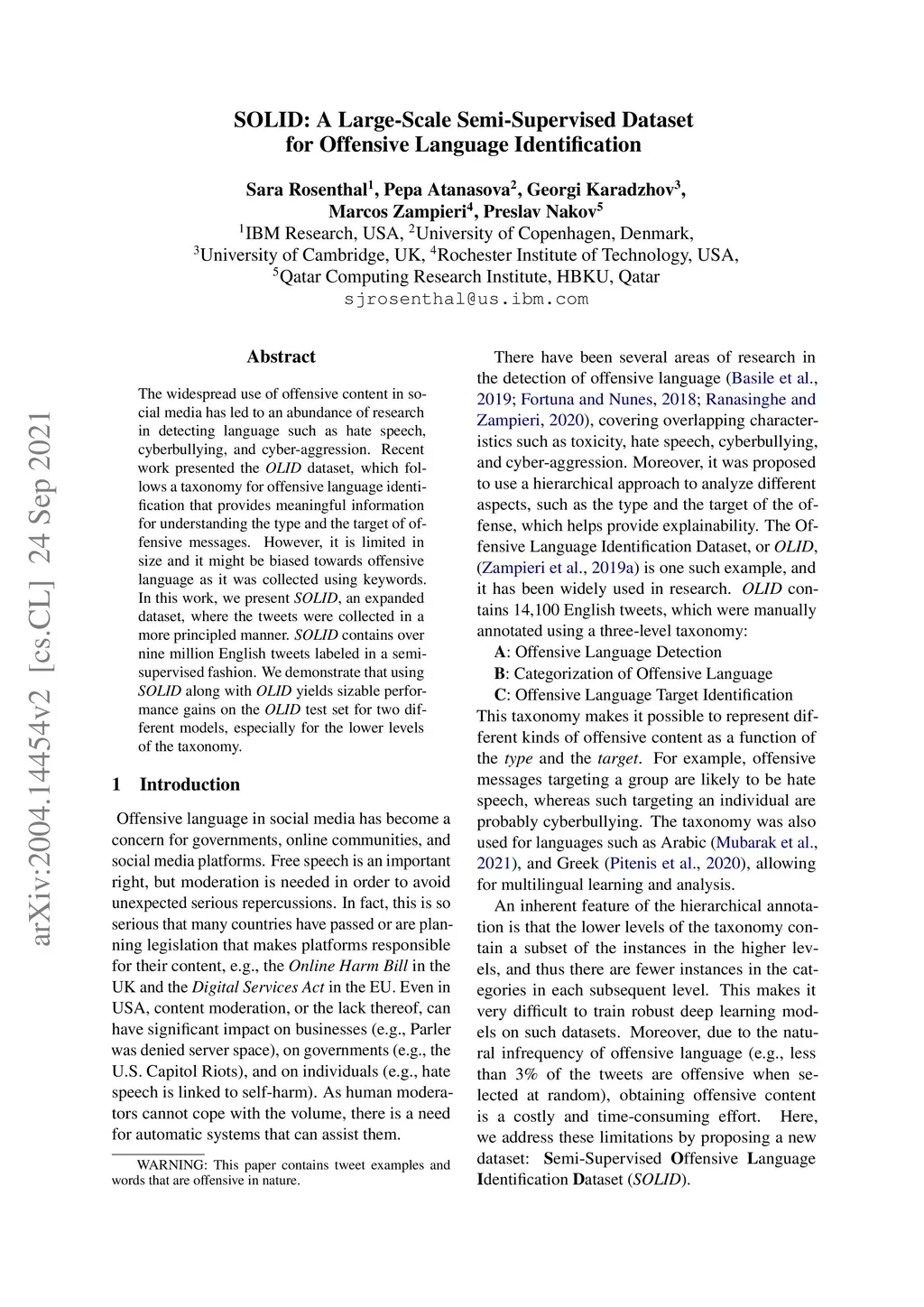 SOLID: A Large-Scale Semi-Supervised Dataset for Offensive Language