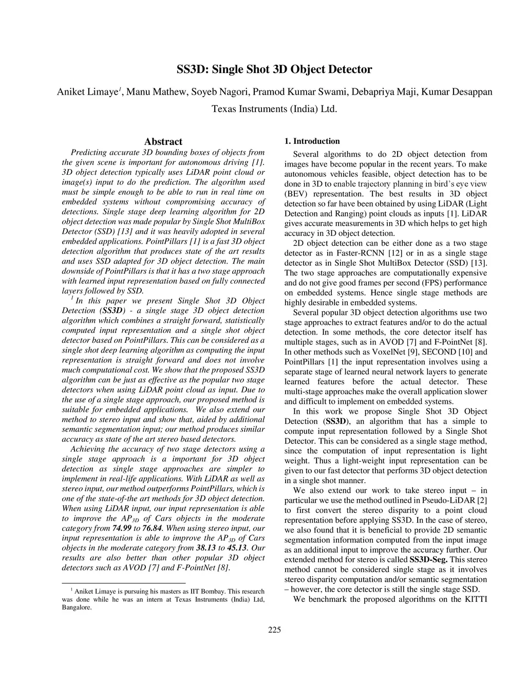 SS3D: Single Shot 3D Object Detector