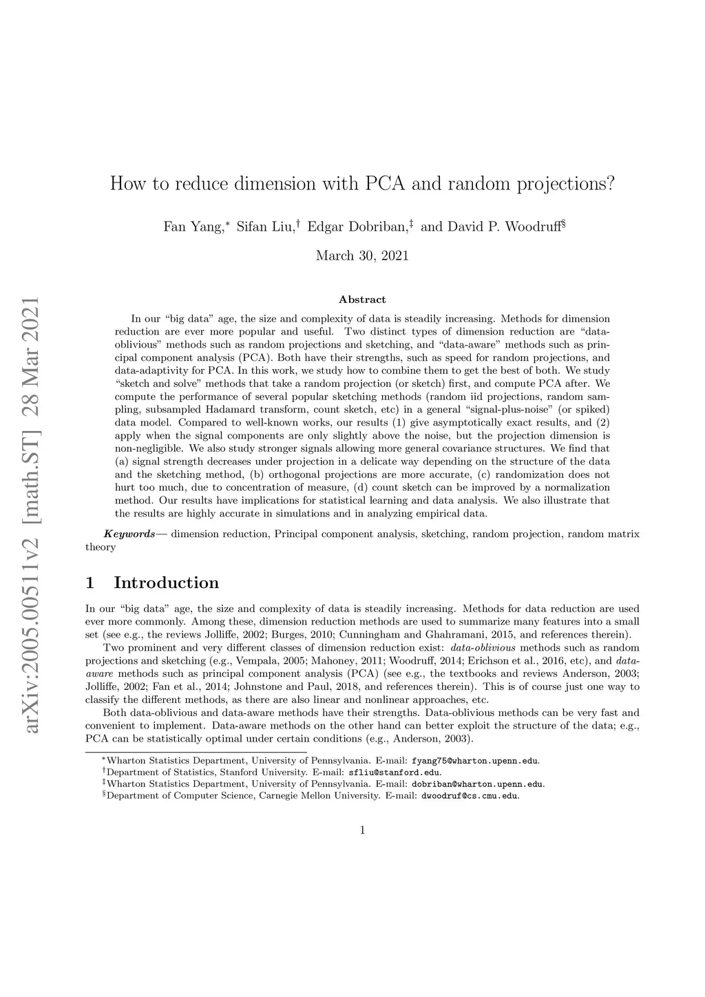 How to reduce dimension with PCA and random projections?