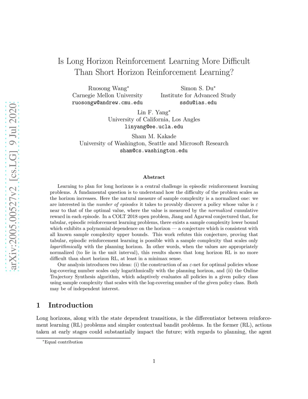 Is Long Horizon Reinforcement Learning More Difficult Than Short Horizon