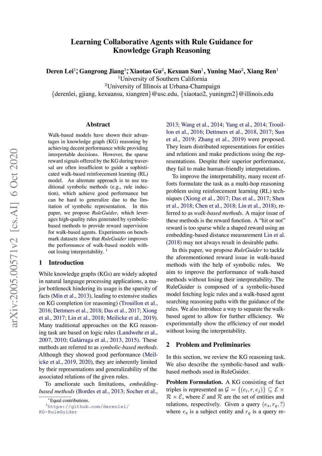 Learning Collaborative Agents with Rule Guidance for Knowledge Graph