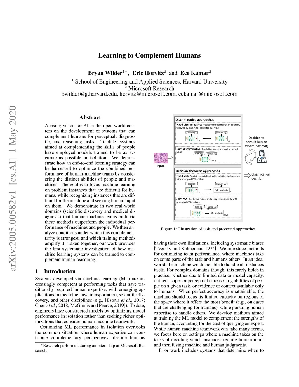 A rising vision for AI in the open world centers on the development of systems that can complement humans for perceptual, diagnostic, and reasoning tasks. To date, systems aimed at complementing the skills of people have employed models trained to be as accurate as possible in isolation. We demonstrate how an end-to-end learning strategy can be harnessed to optimize the combined performance of human-machine teams by considering the distinct abilities of people and machines. The goal is to focus machine learning on problem instances that are difficult for humans, while recognizing instances that are difficult for the machine and seeking human input on them. We demonstrate in two real-world domains (scientific discovery and medical diagnosis) that human-machine teams built via these methods outperform the individual performance of machines and people. We then analyze conditions under which this complementarity is strongest, and which training methods amplify it. Taken together, our work provides the first systematic investigation of how machine learning systems can be trained to complement human reasoning.