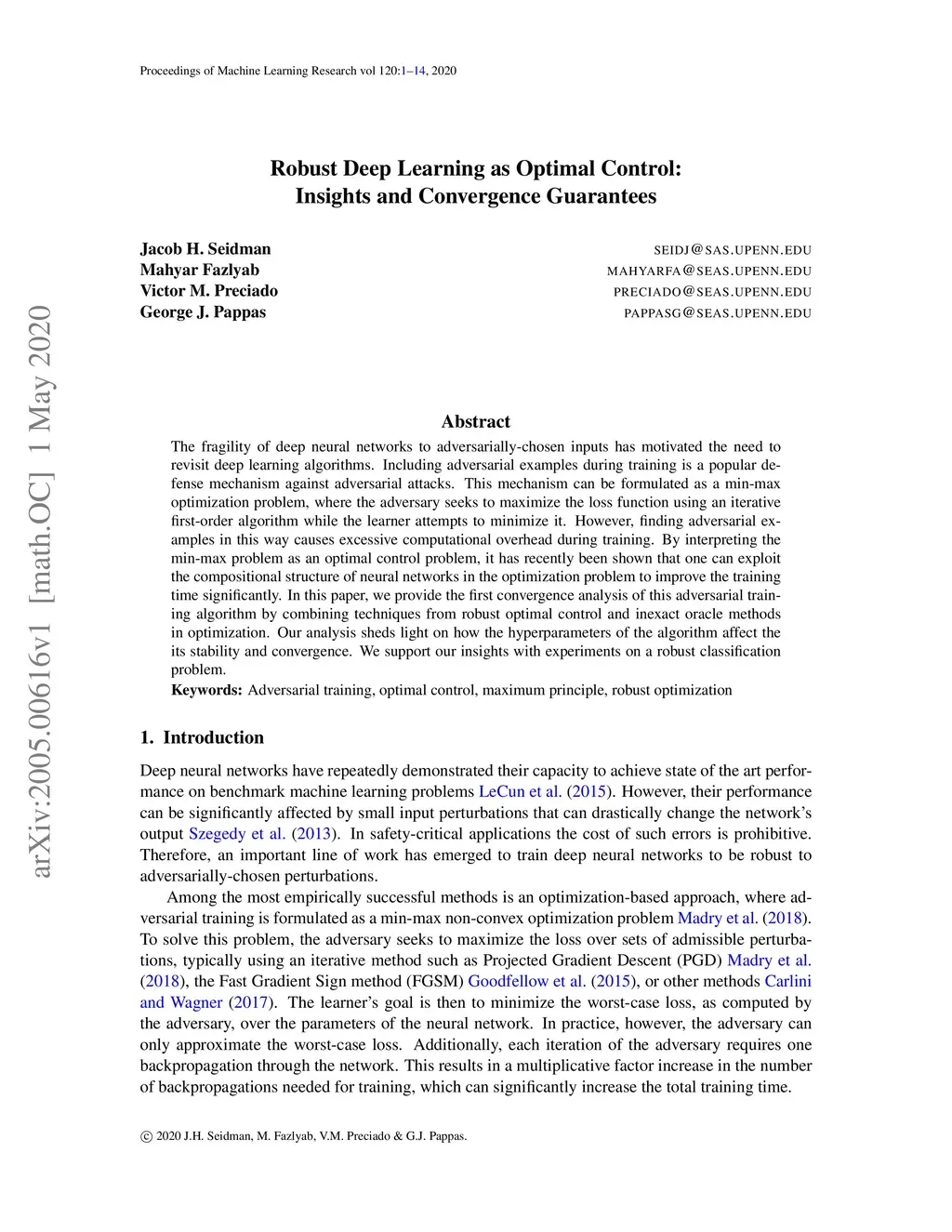 Robust Deep Learning as Optimal Control: Insights and Convergence
