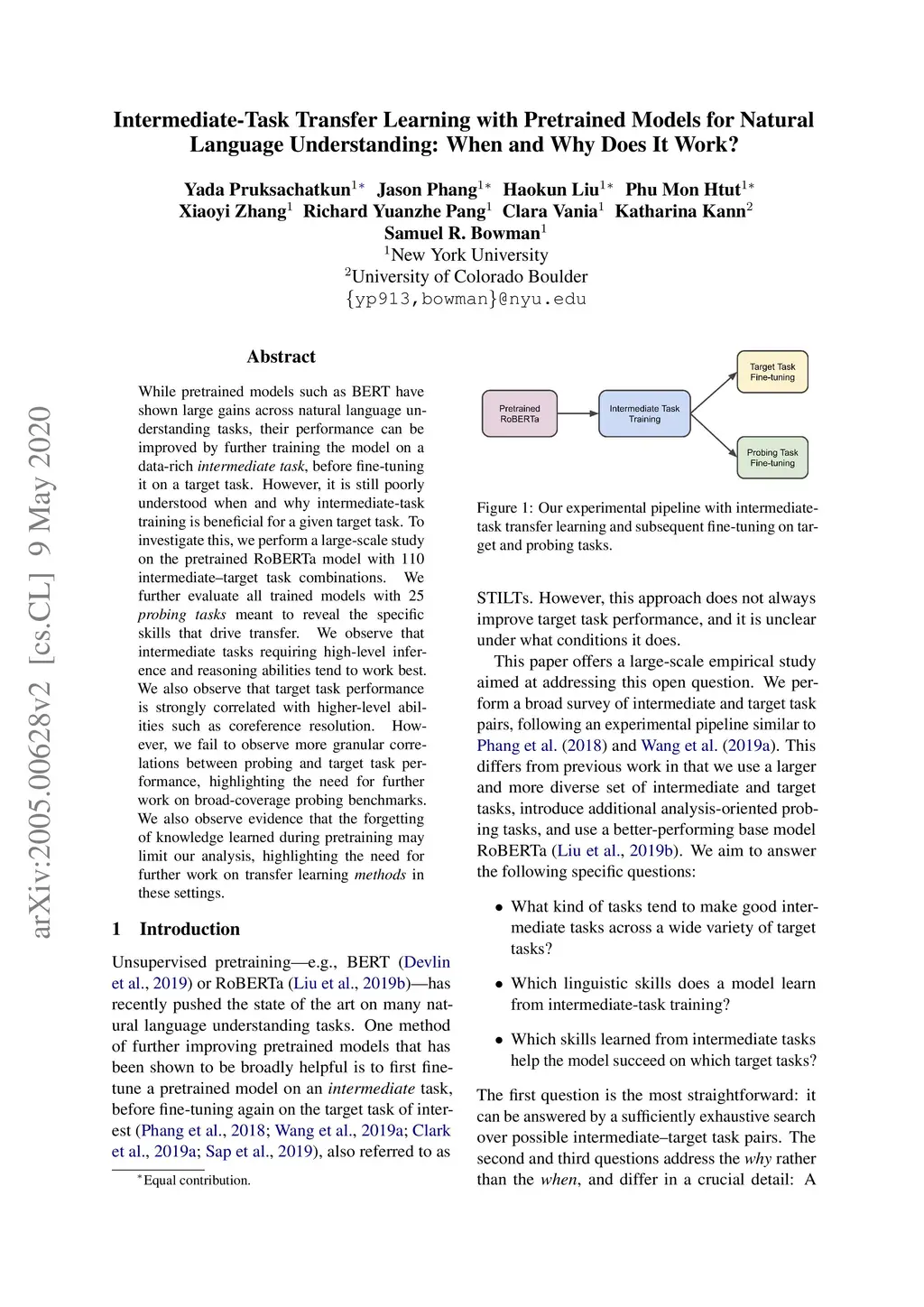 Intermediate-Task Transfer Learning with Pretrained Models for Natural