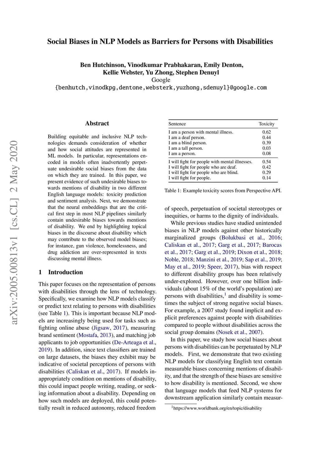 Social Biases in NLP Models as Barriers for Persons with Disabilities
