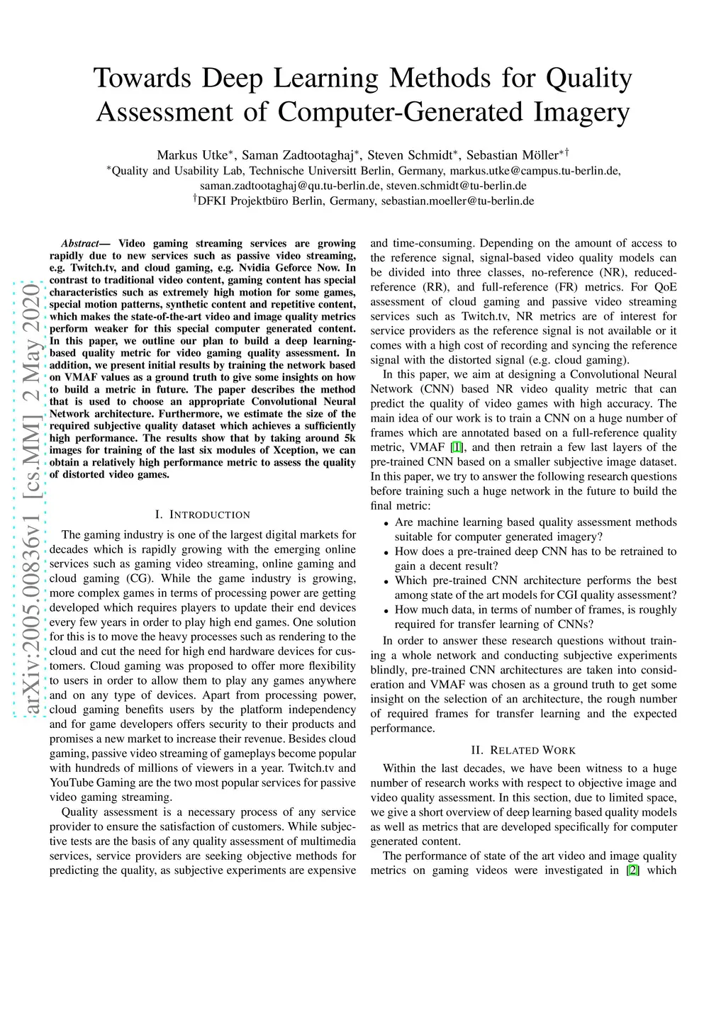 Video gaming streaming services are growing rapidly due to new services such as passive video streaming, e.g. Twitch.tv, and cloud gaming, e.g. Nvidia Geforce Now. In contrast to traditional video content, gaming content has special characteristics such as extremely high motion for some games, special motion patterns, synthetic content and repetitive content, which makes the state-of-the-art video and image quality metrics perform weaker for this special computer generated content. In this paper, we outline our plan to build a deep learningbased quality metric for video gaming quality assessment. In addition, we present initial results by training the network based on VMAF values as a ground truth to give some insights on how to build a metric in future. The paper describes the method that is used to choose an appropriate Convolutional Neural Network architecture. Furthermore, we estimate the size of the required subjective quality dataset which achieves a sufficiently high performance. The results show that by taking around 5k images for training of the last six modules of Xception, we can obtain a relatively high performance metric to assess the quality of distorted video games.