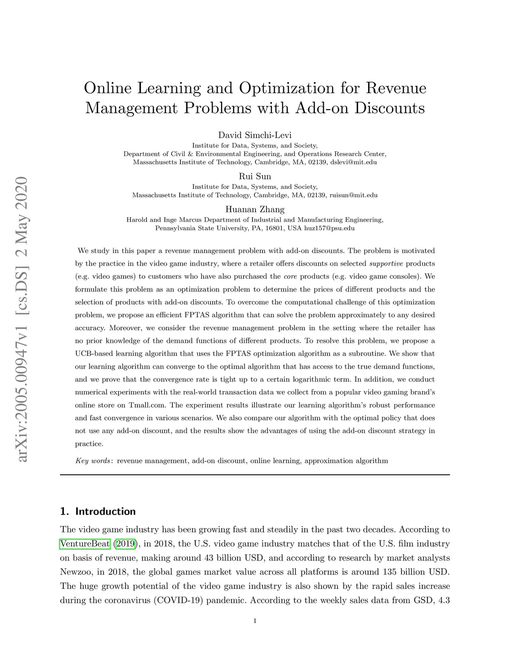 We study in this paper a revenue management problem with add-on discounts. The problem is motivated by the practice in the video game industry, where a retailer offers discounts on selected supportive products (e.g. video games) to customers who have also purchased the core products (e.g. video game consoles). We formulate this problem as an optimization problem to determine the prices of different products and the selection of products with add-on discounts. To overcome the computational challenge of this optimization problem, we propose an efficient FPTAS algorithm that can solve the problem approximately to any desired accuracy. Moreover, we consider the revenue management problem in the setting where the retailer has no prior knowledge of the demand functions of different products. To resolve this problem, we propose a UCB-based learning algorithm that uses the FPTAS optimization algorithm as a subroutine. We show that our learning algorithm can converge to the optimal algorithm that has access to the true demand functions, and we prove that the convergence rate is tight up to a certain logarithmic term. In addition, we conduct numerical experiments with the real-world transaction data we collect from a popular video gaming brand's online store on Tmall.com. The experiment results illustrate our learning algorithm's robust performance and fast convergence in various scenarios. We also compare our algorithm with the optimal policy that does not use any add-on discount, and the results show the advantages of using the add-on discount strategy in practice.