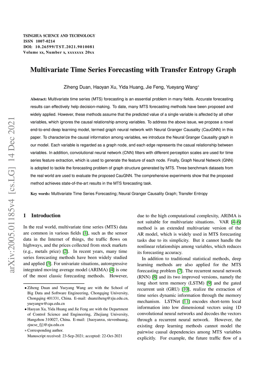 Multivariate Time Series Forecasting with Transfer Entropy Graph
