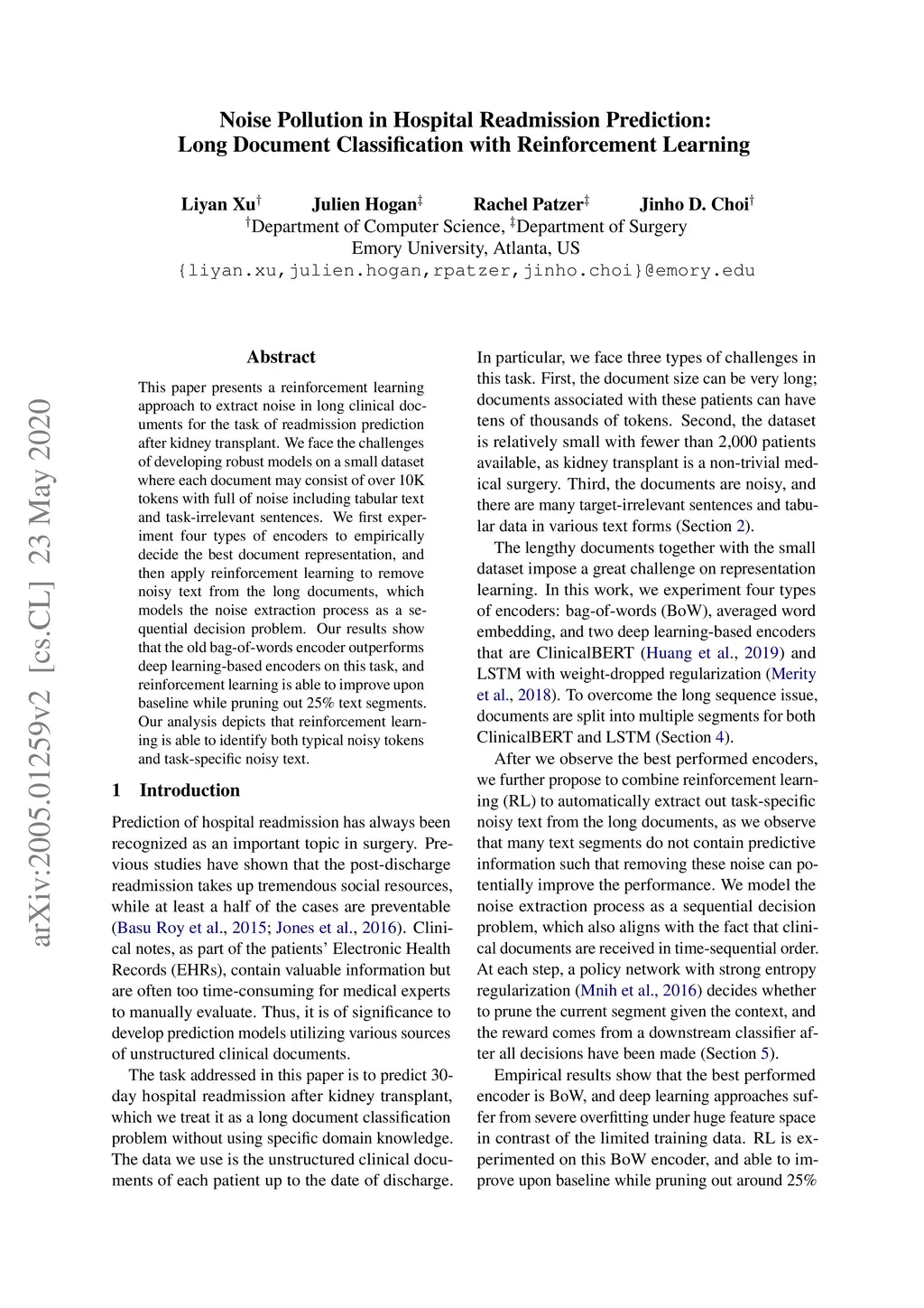Noise Pollution in Hospital Readmission Prediction: Long Document