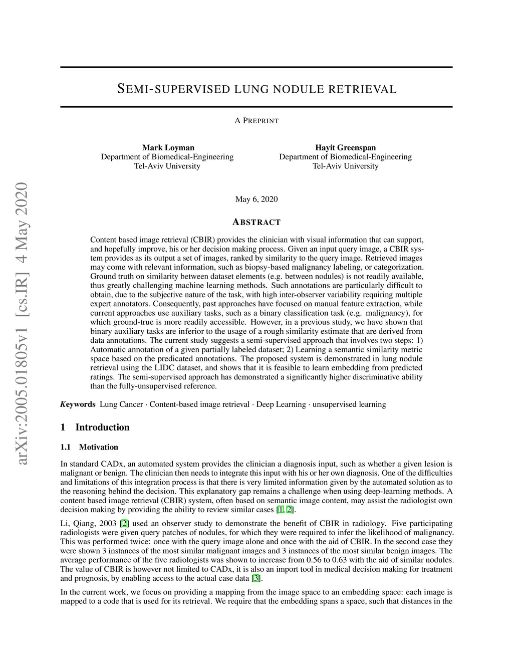 Content based image retrieval (CBIR) provides the clinician with visual information that can support, and hopefully improve, his or her decision making process. Given an input query image, a CBIR system provides as its output a set of images, ranked by similarity to the query image. Retrieved images may come with relevant information, such as biopsy-based malignancy labeling, or categorization. Ground truth on similarity between dataset elements (e.g. between nodules) is not readily available, thus greatly challenging machine learning methods. Such annotations are particularly difficult to obtain, due to the subjective nature of the task, with high inter-observer variability requiring multiple expert annotators. Consequently, past approaches have focused on manual feature extraction, while current approaches use auxiliary tasks, such as a binary classification task (e.g. malignancy), for which ground-true is more readily accessible. However, in a previous study, we have shown that binary auxiliary tasks are inferior to the usage of a rough similarity estimate that are derived from data annotations. The current study suggests a semi-supervised approach that involves two steps: 1) Automatic annotation of a given partially labeled dataset; 2) Learning a semantic similarity metric space based on the predicated annotations. The proposed system is demonstrated in lung nodule retrieval using the LIDC dataset, and shows that it is feasible to learn embedding from predicted ratings. The semi-supervised approach has demonstrated a significantly higher discriminative ability than the fully-unsupervised reference.