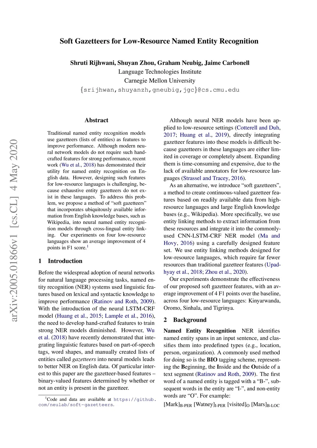Soft Gazetteers for Low-Resource Named Entity Recognition