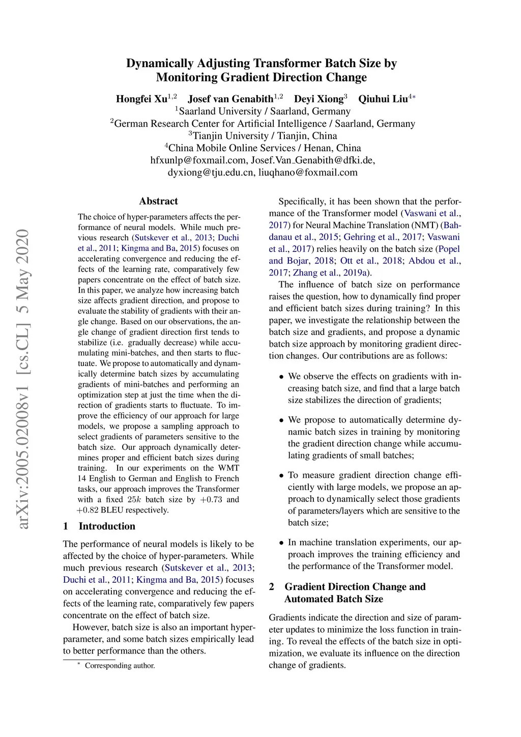 Dynamically Adjusting Transformer Batch Size by Monitoring Gradient