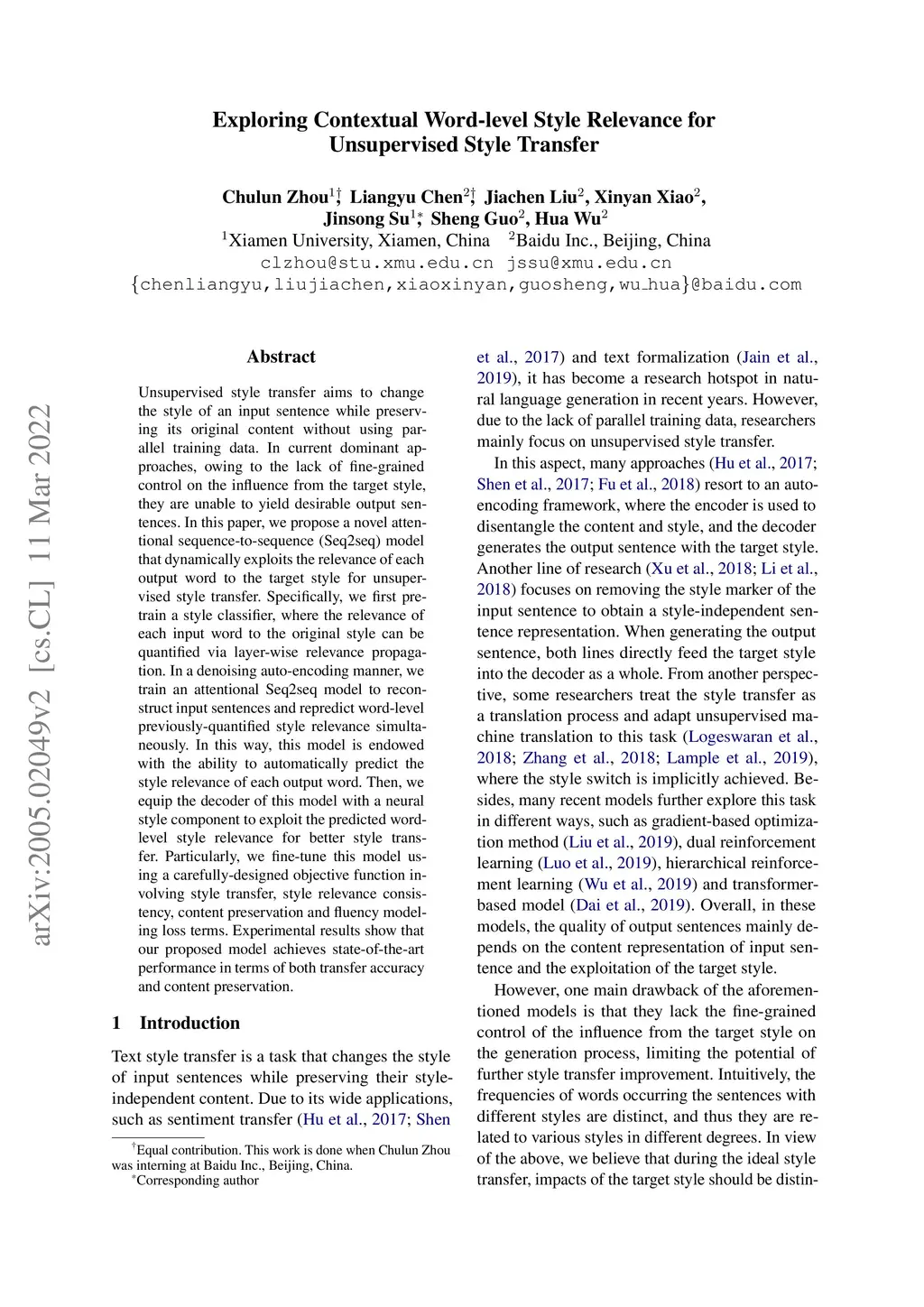 Exploring Contextual Word-level Style Relevance for Unsupervised Style