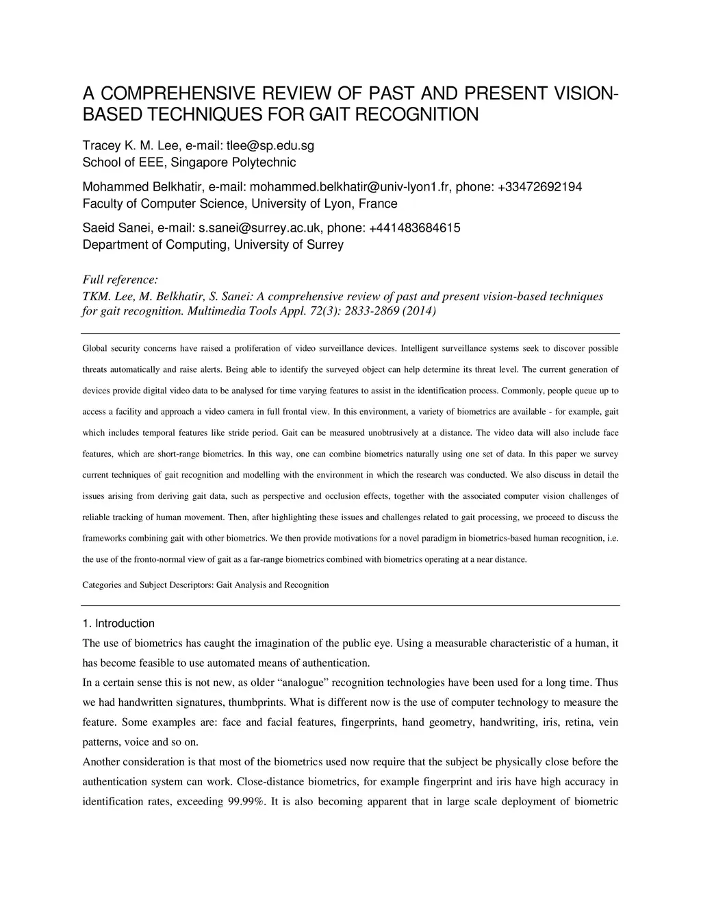 Vision-based techniques for gait recognition