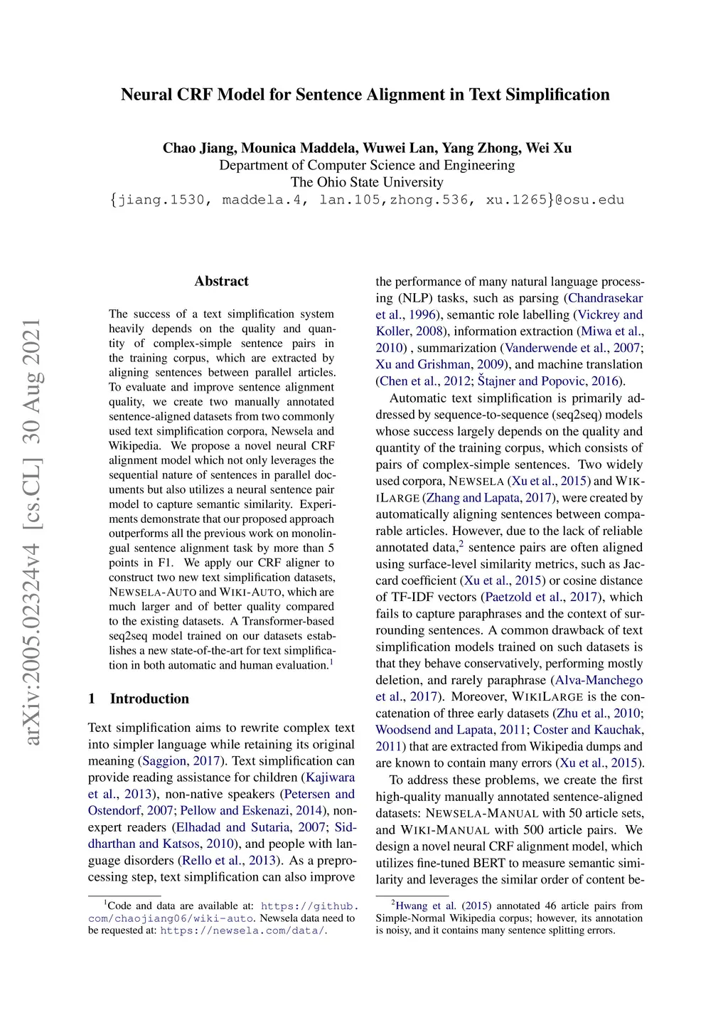 Neural CRF Model for Sentence Alignment in Text Simplification