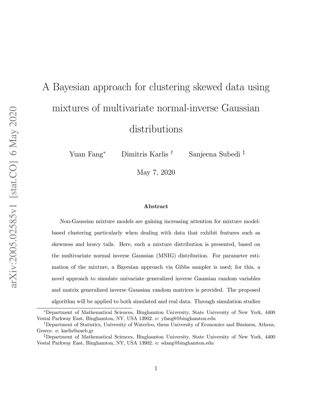 Non-Gaussian mixture models are gaining increasing attention for mixture model-based clustering particularly when dealing with data that exhibit features such as skewness and heavy tails. Here, such a mixture distribution is presented, based on the multivariate normal inverse Gaussian (MNIG) distribution. For parameter estimation of the mixture, a Bayesian approach via Gibbs sampler is used; for this, a novel approach to simulate univariate generalized inverse Gaussian random variables and matrix generalized inverse Gaussian random matrices is provided. The proposed algorithm will be applied to both simulated and real data. Through simulation studies and real data analysis, we show parameter recovery and that our approach provides competitive clustering results compared to other clustering approaches.