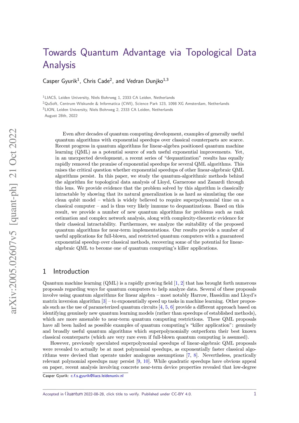 Even after decades of quantum computing development, examples of generally useful quantum algorithms with exponential speedups over classical counterparts are scarce. Recent progress in quantum algorithms for linear-algebra positioned quantum machine learning (QML) as a potential source of such useful exponential improvements. Yet, in an unexpected development, a recent series of "dequantization" results has equally rapidly removed the promise of exponential speedups for several QML algorithms. This raises the critical question whether exponential speedups of other linear-algebraic QML algorithms persist. In this paper, we study the quantum-algorithmic methods behind the algorithm for topological data analysis of Lloyd, Garnerone and Zanardi through this lens. We provide evidence that the problem solved by this algorithm is classically intractable by showing that its natural generalization is as hard as simulating the one clean qubit model -- which is widely believed to require superpolynomial time on a classical computer -- and is thus very likely immune to dequantizations. Based on this result, we provide a number of new quantum algorithms for problems such as rank estimation and complex network analysis, along with complexity-theoretic evidence for their classical intractability. Furthermore, we analyze the suitability of the proposed quantum algorithms for near-term implementations. Our results provide a number of useful applications for full-blown, and restricted quantum computers with a guaranteed exponential speedup over classical methods, recovering some of the potential for linear-algebraic QML to become one of quantum computing's killer applications.