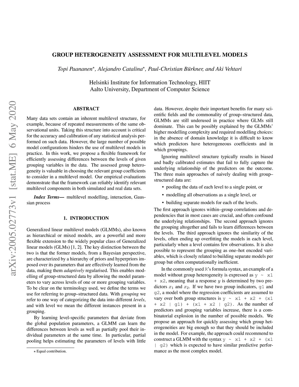 Many data sets contain an inherent multilevel structure, for example, because of repeated measurements of the same observational units. Taking this structure into account is critical for the accuracy and calibration of any statistical analysis performed on such data. However, the large number of possible model configurations hinders the use of multilevel models in practice. In this work, we propose a flexible framework for efficiently assessing differences between the levels of given grouping variables in the data. The assessed group heterogeneity is valuable in choosing the relevant group coefficients to consider in a multilevel model. Our empirical evaluations demonstrate that the framework can reliably identify relevant multilevel components in both simulated and real data sets.