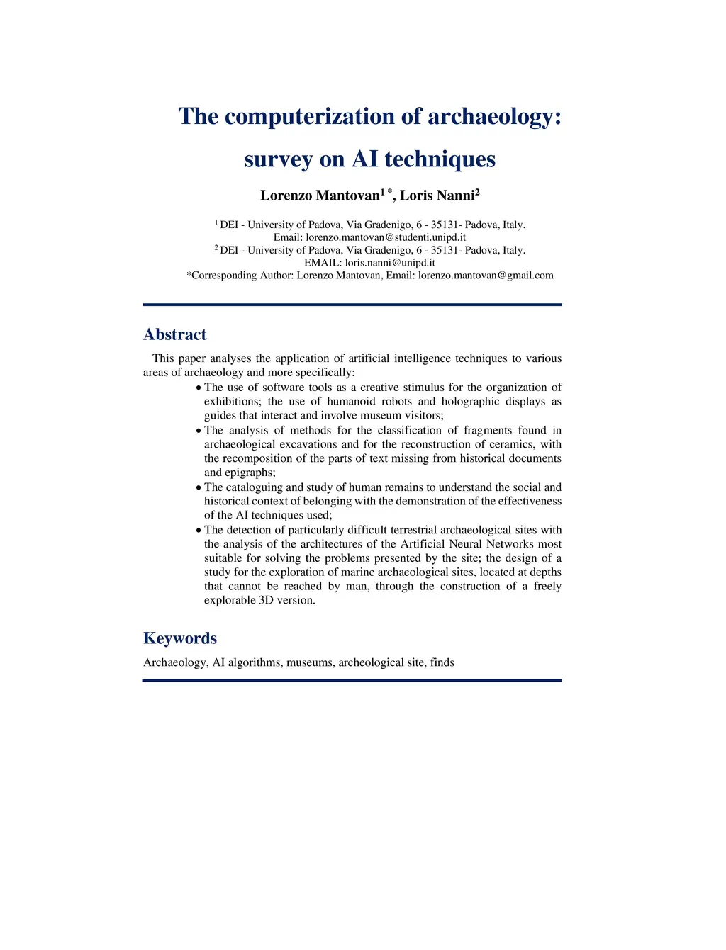 The computerization of archaeology: survey on AI techniques
