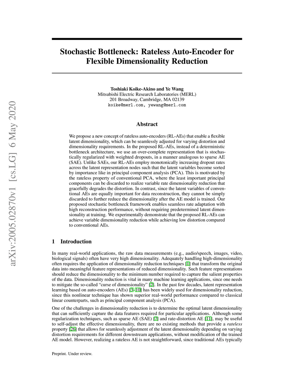 Stochastic Bottleneck: Rateless Auto-Encoder for Flexible Dimensionality