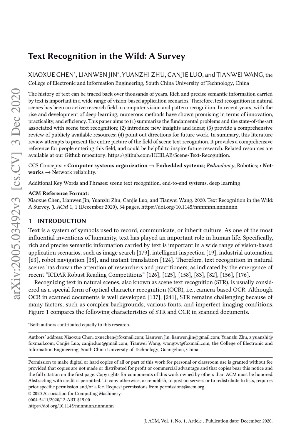 Text Recognition in the Wild: A Survey