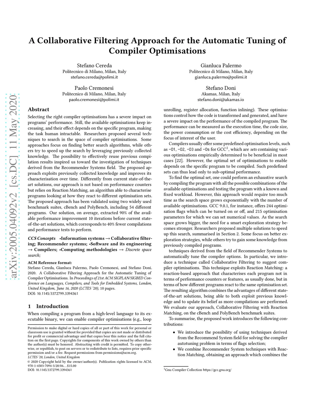 A Collaborative Filtering Approach for the Automatic Tuning of Compiler