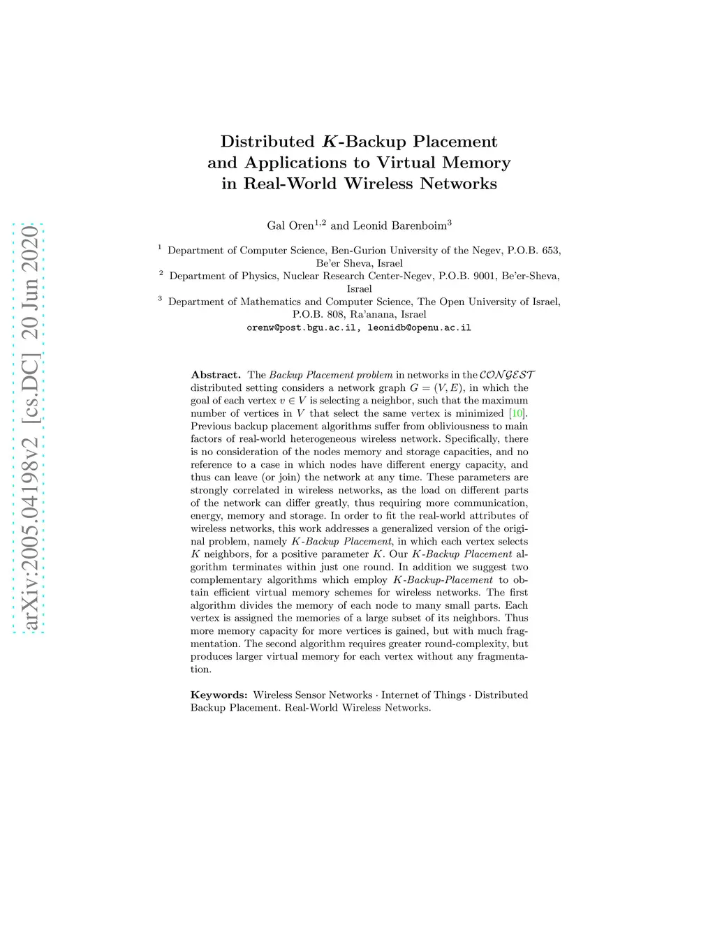 Distributed K-Backup Placement and Applications to Virtual Memory in