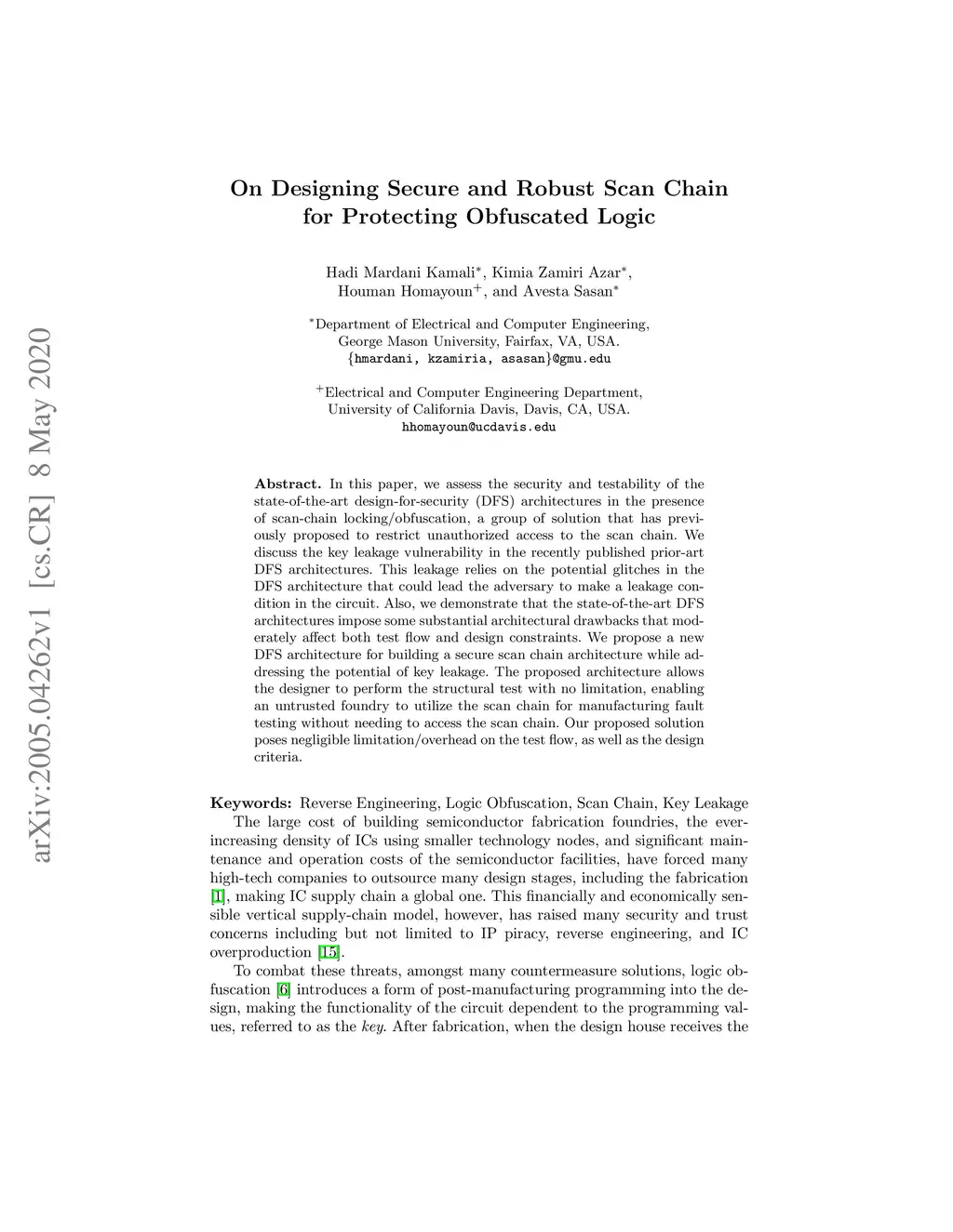 In this paper, we assess the security and testability of the state-of-the-art design-for-security (DFS) architectures in the presence of scan-chain locking/obfuscation, a group of solution that has previously proposed to restrict unauthorized access to the scan chain. We discuss the key leakage vulnerability in the recently published prior-art DFS architectures. This leakage relies on the potential glitches in the DFS architecture that could lead the adversary to make a leakage condition in the circuit. Also, we demonstrate that the state-of-the-art DFS architectures impose some substantial architectural drawbacks that moderately affect both test flow and design constraints. We propose a new DFS architecture for building a secure scan chain architecture while addressing the potential of key leakage. The proposed architecture allows the designer to perform the structural test with no limitation, enabling an untrusted foundry to utilize the scan chain for manufacturing fault testing without needing to access the scan chain. Our proposed solution poses negligible limitation/overhead on the test flow, as well as the design criteria.